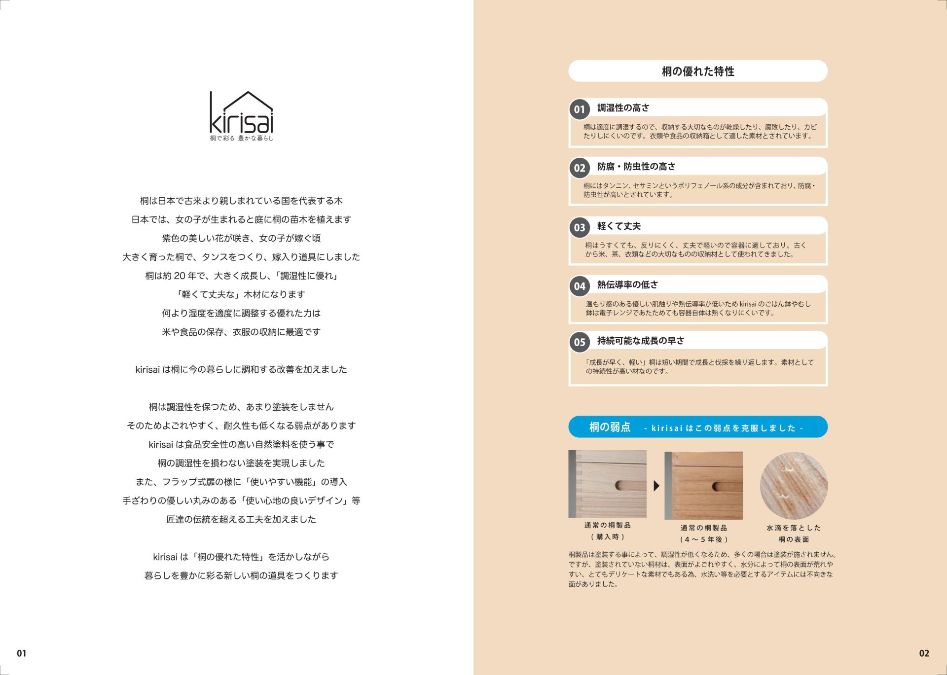 桐は軽く、調湿性に優れた天然素材。
