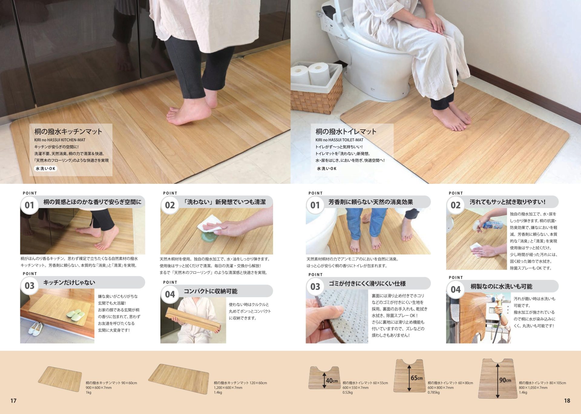 桐の撥水マット(キッチンマット / トイレマット)